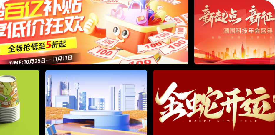 涵盖元素 艺术字 GIF 海报 电商 UI 3D等 支持在线修改和源文件下载